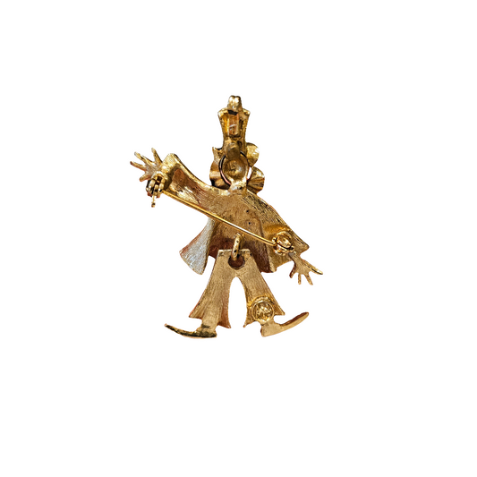 Articulated Clown Brooch Black And White Enamel Gold Circus Pin