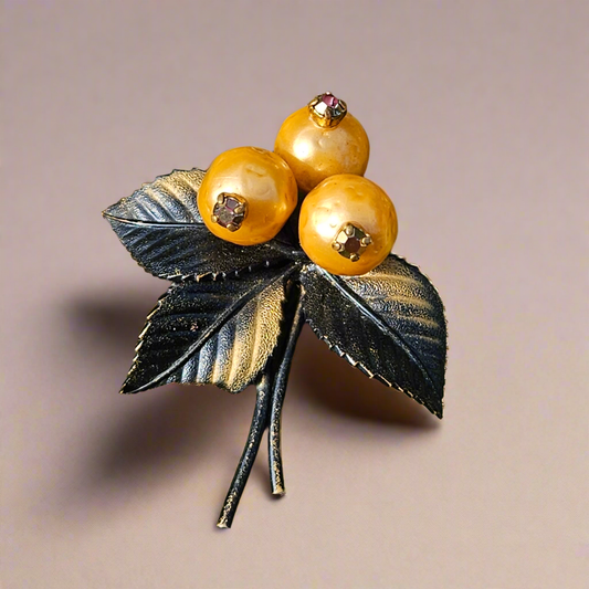 Pomegranate Brooch Pink Crystal Pin Pearl Antique Jewellery Unique