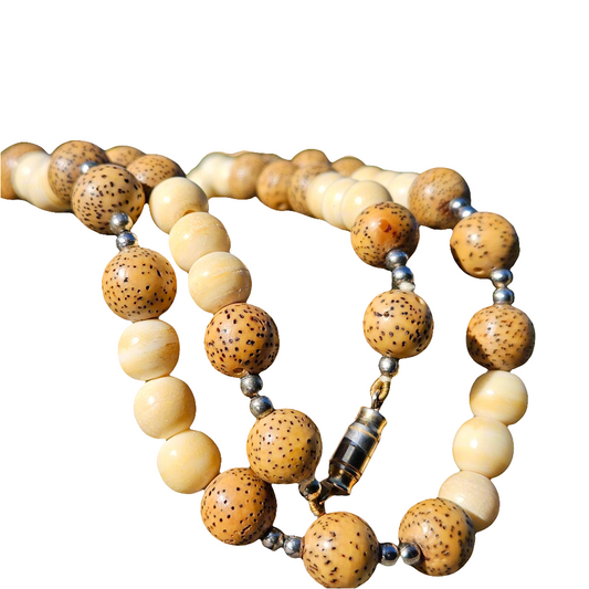 Bodhi Buddha Mala Beads Prayer Necklace Ivory Colour Bone Lotus Seed
