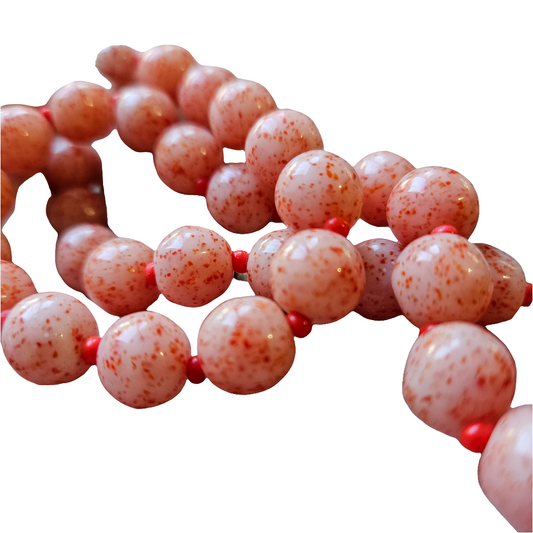 Beautiful Glass Necklace Coral Pink Speck Beads Vintage Jewellery Nettie Rosenstein