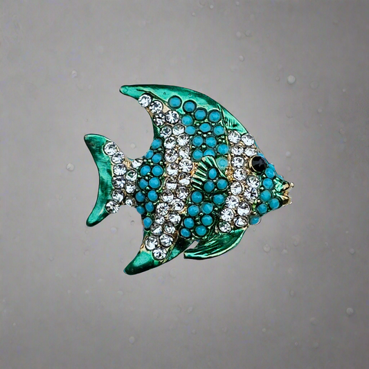 Blue Angel Fish Brooch Gold Vintage Jewellery Crystal Diamante