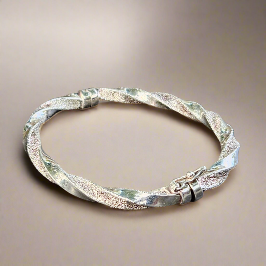 925 Twisted Bangle Textured Hinged Bracelet Sterling Silver Jewellery