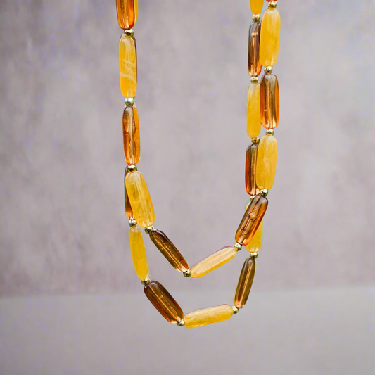 2 Tone Faux Amber Resin Beads Long Vintage Necklace