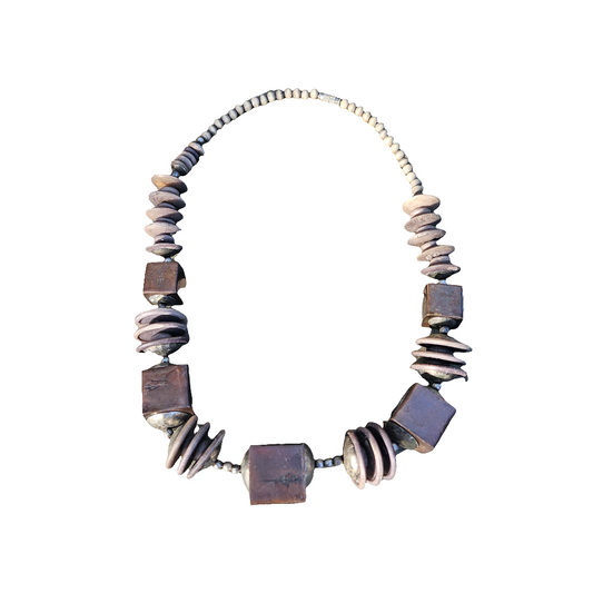 Chunky Vintage Necklace Bone Copper Cube Beaded 60s Boho Studio Jewellery