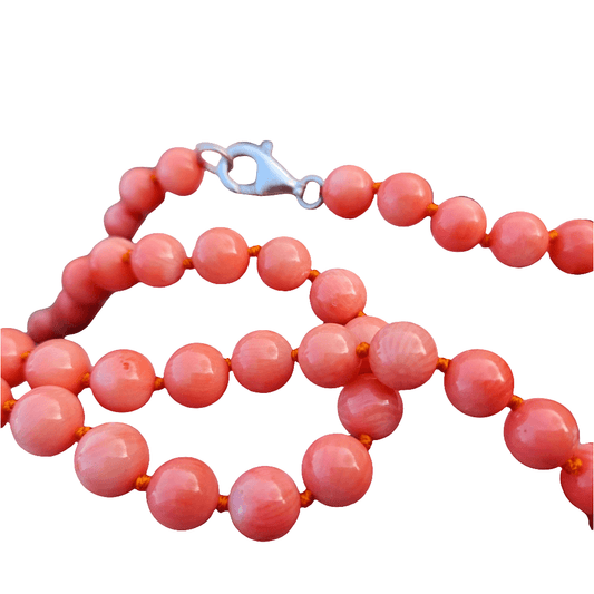 Hand Knotted Coral Necklace Vibrant Pink Long Jewellery Beads Jewelry 925 Silver