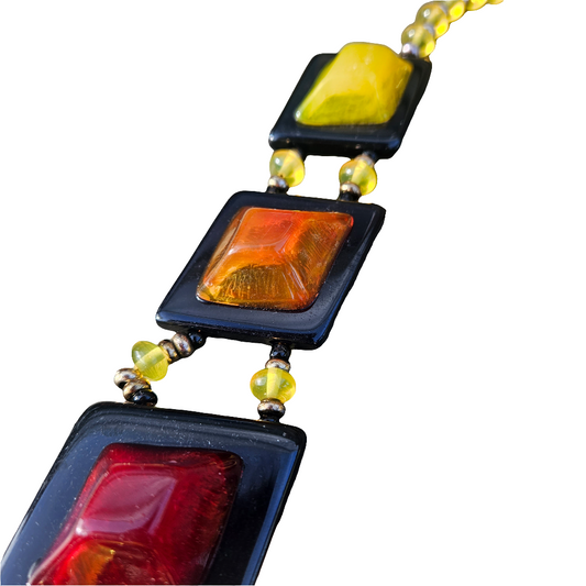 Vintage Galalith Disc Necklace Red Black Boho Ethnic Jewellery Jewelry