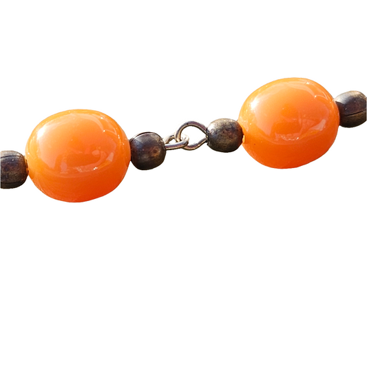 Vibrant Orange And Brass Beaded Necklace Vintage Bead Jewelry