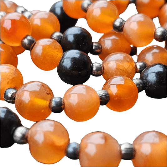 Beautiful Carnelian And Onyx Necklace Vintage Beads Long Gemstone Jewellery