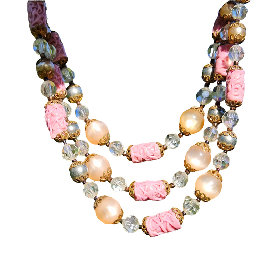 Moonglow Miriam Haskell Art Glass Triple Strand Glass Necklace Vintage Jewellery