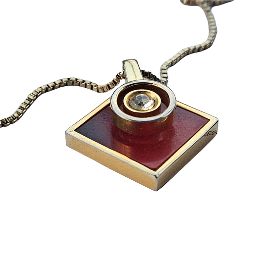 Retro Amber Colour Geometric Necklace Rhinestone Gold Pendant