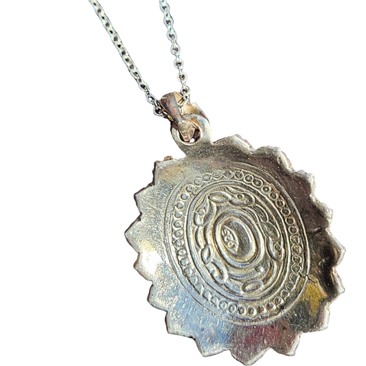 Large Lapis Lazuli 925 Silver Pendant Coral Mosaic Necklace Vintage Jewellery