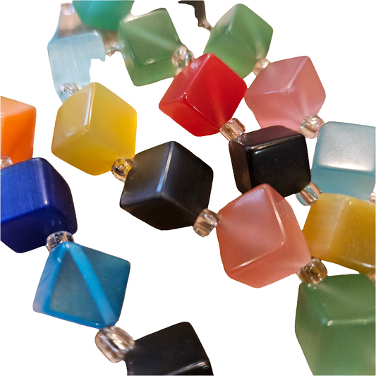 Multicolour Fibre Optic Glass Necklace Square Beads Vintage Funky Jewellery