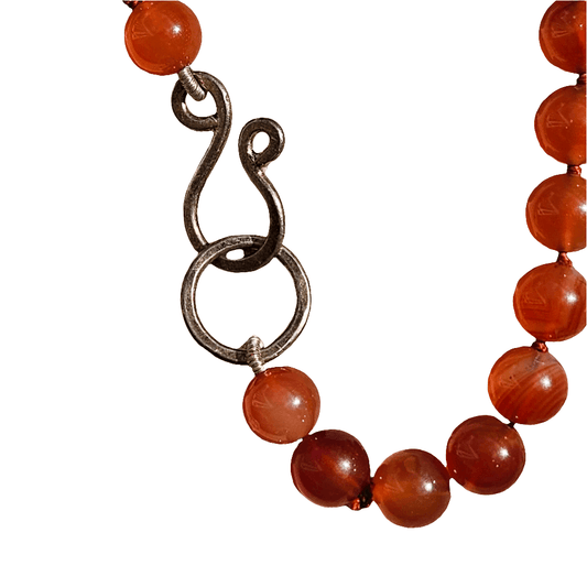 Polished Carnelian Bead Necklace Sterling Silver Hook Clasp Gemstone Jewellery