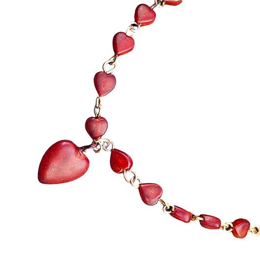 Vintage Early Plastic Red Heart Necklace Cute Kitsch Jewellery Celluloid