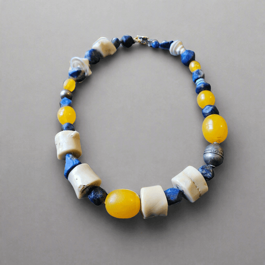 Carved Lapis Lazuli Bone Turquoise Necklace Ethnic 19th Century