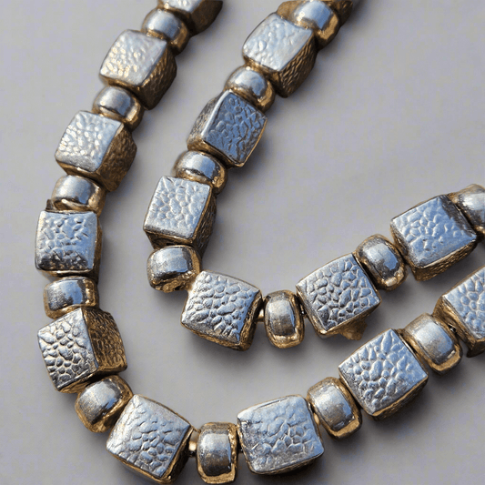 Chunky Sterling Silver 925 Square Cubic Beads Necklace Cube Designer Statement