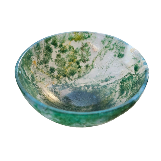 Carved Moss Agate Bowl Small Polished Green Chinese Cup Translucent