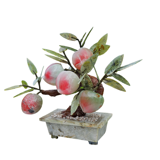 Vintage Carved Jade Peach Tree Bonsai Heavy Stone Chinese Houseplant