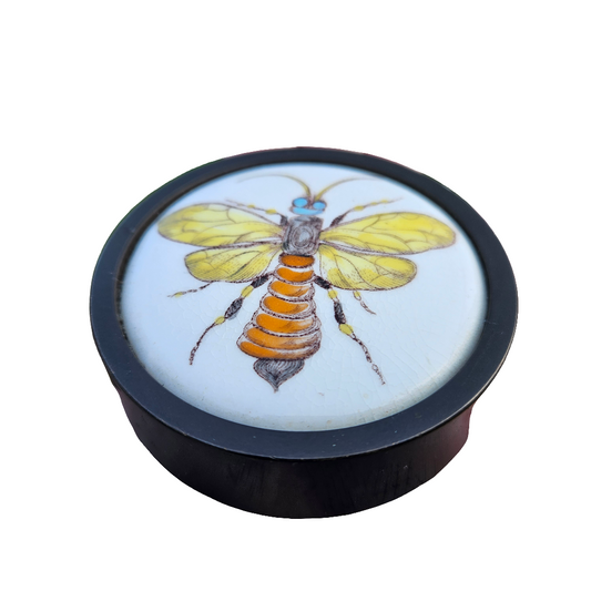 Brass Paperweight Hand Painted Moth England SH Vintage 1970s English Decor