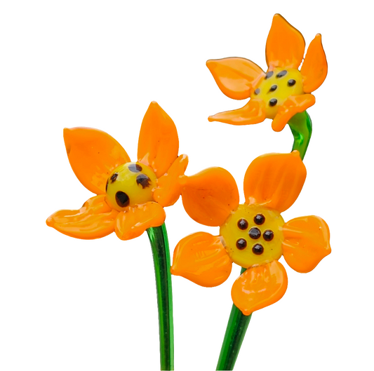 Single Glass Flower Vintage 60s Retro Decor Orange Flowers 16 cm