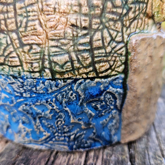 Studio Pottery Patchwork Vase Blue Green Vintage Mid Century Independent Art