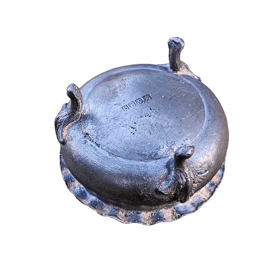 Antique Silver Plate Pewter Colour Salt Cauldron Three Legged Miniature Planter
