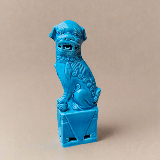 Turquoise Blue Glaze Chinese Foo Dog Ornament Figurine 11.5cm Vintage Retro