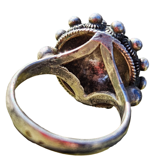 Vintage Dutch Button Ring Handcrafted Sterling Silver Filigree Size 6