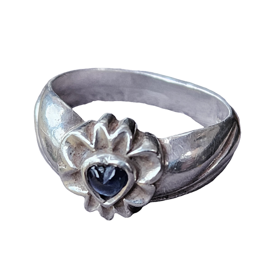 Carved Sapphire Heart 925 Silver Ring Vintage Jewellery UK Size Q