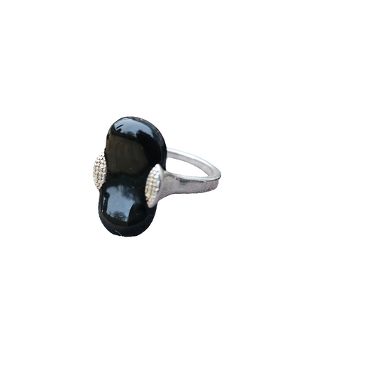 925 Sterling Silver Ring Black Jellybean Jewellery Modern Jewelry Size 8 UK P 1/2