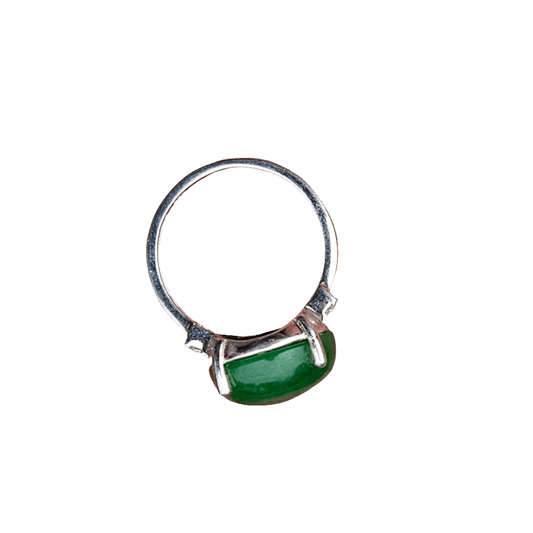 Carved Jade Ring Antique Silver Art Deco Chinese Jewellery Size M