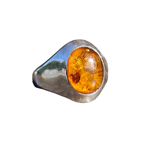 Hand Crafted Amber Ring Antique Sterling Silver Jewellery UK Size P