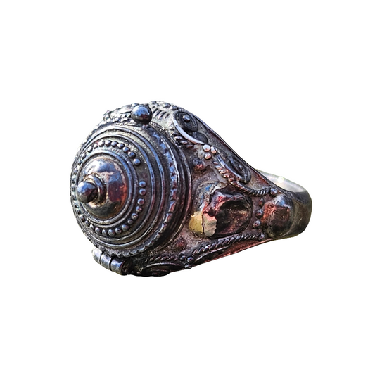 Antique Secret Opening Poison Pill Ring Snuff Jewellery 925 Silver Size 7 Yemen