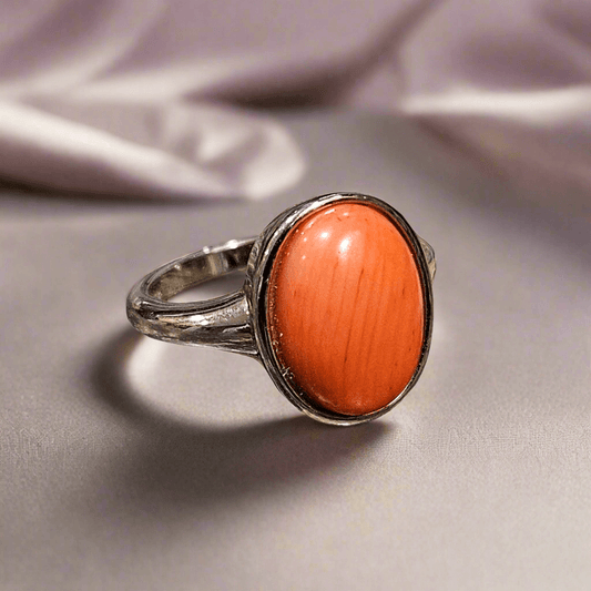 Sterling Silver Ring Beautiful Coral Cabouchon Vintage Boho Size O