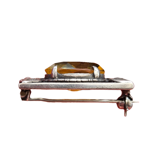 Art Nouveau Sterling Silver Rectangular Brooch Citrine Pin Leaf Jewellery