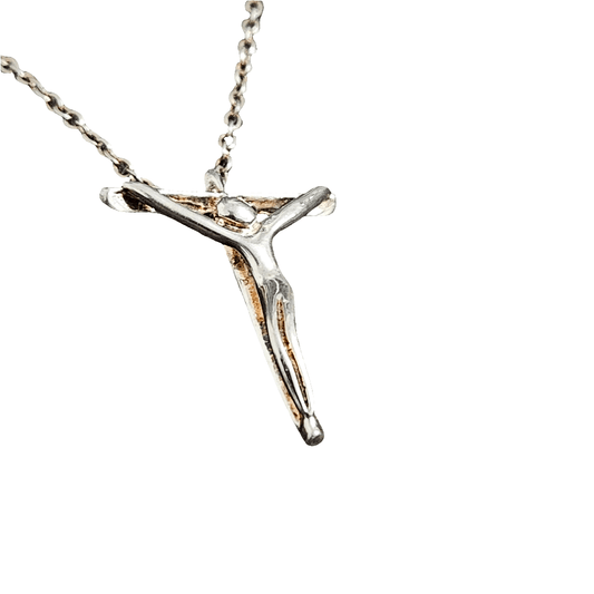 Sterling Silver Crucifix Cross Necklace Stylized Pendant 925 Religious Jewellery