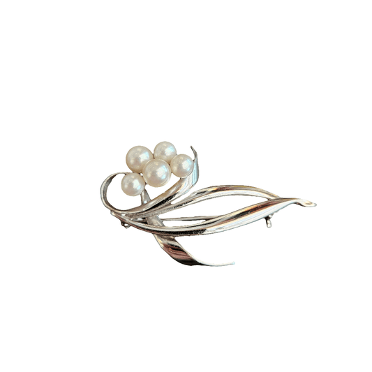 Mikimoto Pearl Brooch 925 Sterling Silver Pin Japan NHK Cluster Stylish Pin