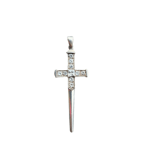 925 Sword Diamante Crystal Dagger Pendant Antique Old Sterling Silver