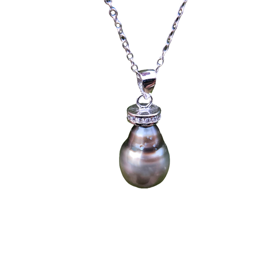 Tahitian South Sea Pearl Necklace Pendant With Crystal Halo Stunning Vintage Jewelry