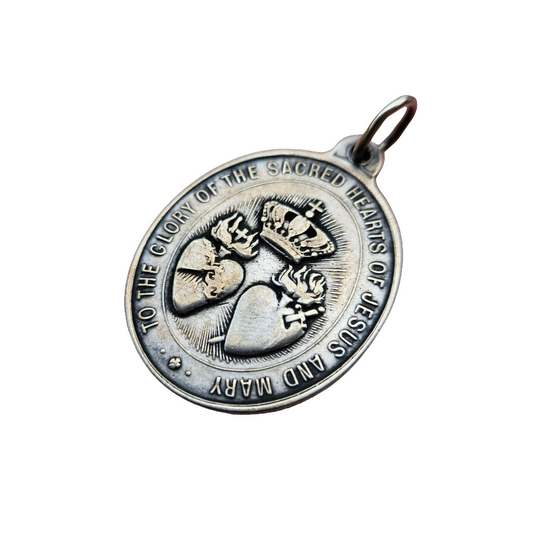 Large Sacred Hearts Mary Religious Pendant For Necklace Sterling Silver Italian