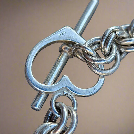 Heavy 925 Sterling Silver Toggle Bracelet Heart Design Unusual Jewellery Gift