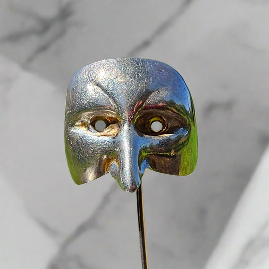 Sterling Silver Venetian Mask Stick Pin Vintage Hallmarked Brooch