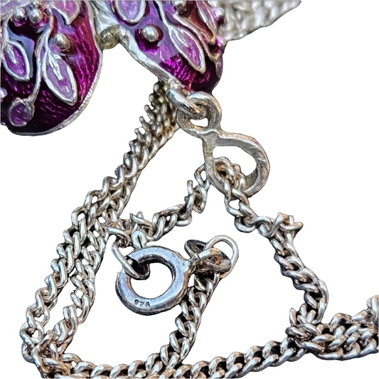 Russian Hallmarked Silver Egg Necklace Purple Enamel Ladybird