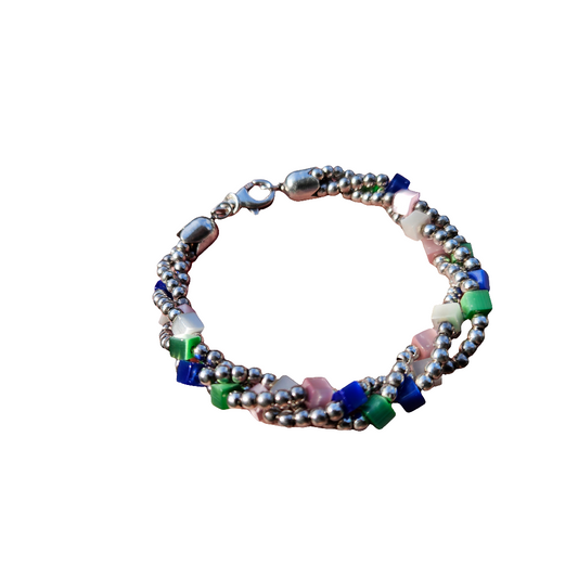 Italian Optic Glass 925 Sterling Silver Bracelet 19 cm Vintage Jewellery
