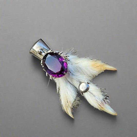 Ward Bros Lucky Grouse Foot Brooch Silver Amethyst Pin Bird Claw Jewellery