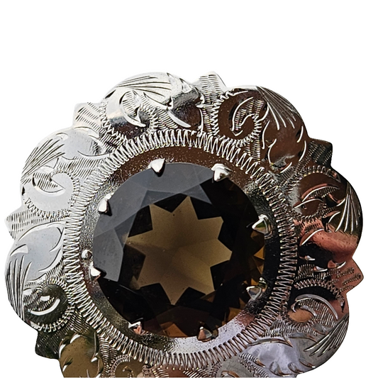 Sterling Silver Smoky Quartz Brooch Pin Scottish Cairngorm Vintage Jewellery