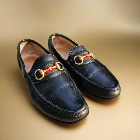 Genuine Gucci Horsebit Loafers Vintage Shoes Black Leather Size 39