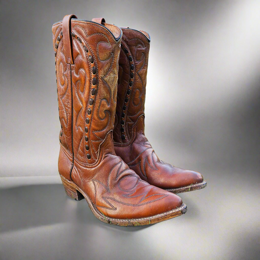 Genuine Cowboy Boots American Vintage Shoes Brown Leather Size 8D