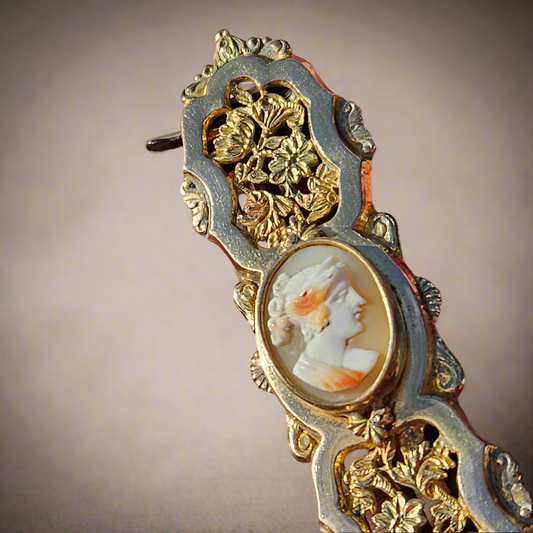 Amazing 1800s French Cameo Hair Grip Gold Plated Antique Accessories